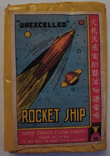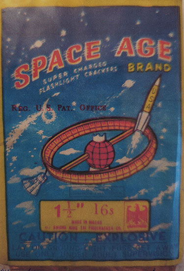 Pictured above: Complete pack of 1 ½” crackers “Space Age Brand” ca. 1950’s. Macau. Scarce to the collector.